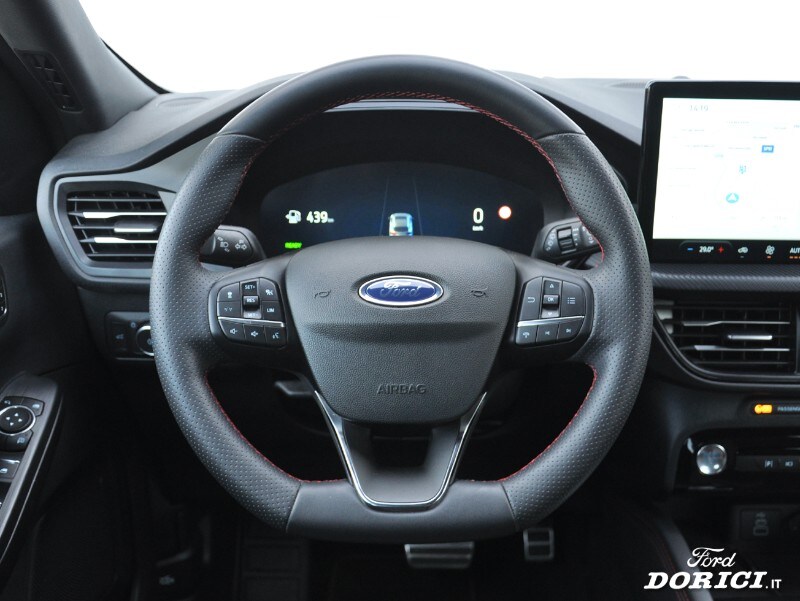 Climatizzatore bi-zona a controllo automatico, SYNC 4 (TouchScreen 13,2’’, Navigation System, B&O Premium Sound system con 10 altoparlanti, DAB, Mirroring Apple Car Play/Android Auto), Keyless Entry & Start, Pre Collision Assist, Sensori di parcheggio anteriori e posteriori, Telecamera di parcheggio posteriore 360°, Adaptive Cruise Control con Stop&Go, Lane Keeping System con Road Edge Detection e Centering Assist, Riconoscimento segnali stradali, Active Park Assist, Tergicristalli automatici con sensore pioggia, Volante in pelle con impunture rosse, Specchietti retrovisori elettrici, riscaldati e ripiegabili elettricamente, Sedili posteriori scorrevoli, Cerchi in lega da 18” St-Line, Fari anteriori Matrix Full LED adattivi con sistema anti-abbagliamento, Head-Up display, Privacy Glass, Ruota di scorta e molto altro