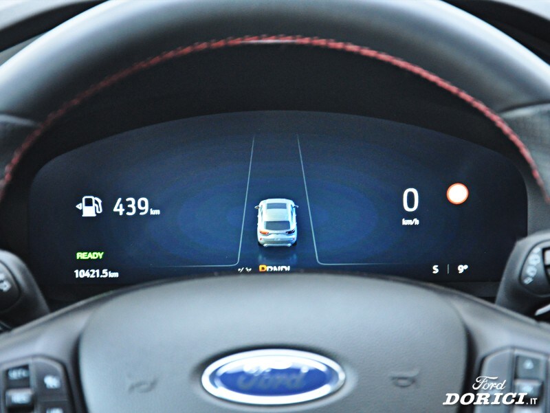 Climatizzatore bi-zona a controllo automatico, SYNC 4 (TouchScreen 13,2’’, Navigation System, B&O Premium Sound system con 10 altoparlanti, DAB, Mirroring Apple Car Play/Android Auto), Keyless Entry & Start, Pre Collision Assist, Sensori di parcheggio anteriori e posteriori, Telecamera di parcheggio posteriore 360°, Adaptive Cruise Control con Stop&Go, Lane Keeping System con Road Edge Detection e Centering Assist, Riconoscimento segnali stradali, Active Park Assist, Tergicristalli automatici con sensore pioggia, Volante in pelle con impunture rosse, Specchietti retrovisori elettrici, riscaldati e ripiegabili elettricamente, Sedili posteriori scorrevoli, Cerchi in lega da 18” St-Line, Fari anteriori Matrix Full LED adattivi con sistema anti-abbagliamento, Head-Up display, Privacy Glass, Ruota di scorta e molto altro